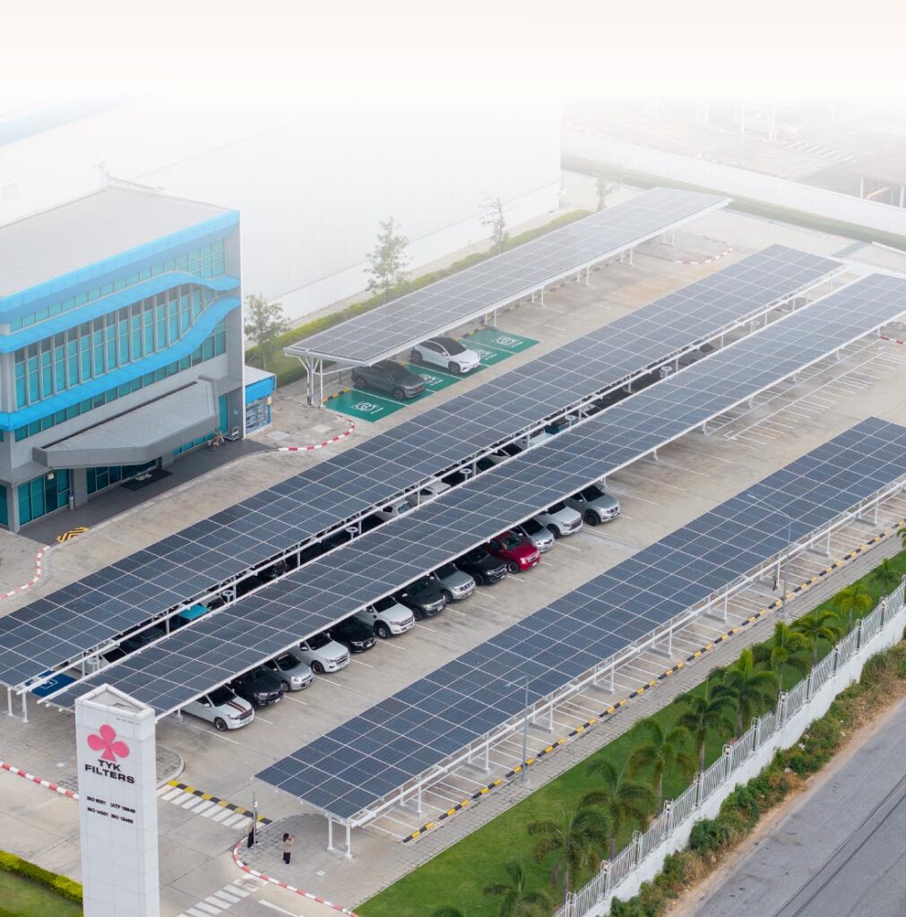 โรงจอดรถโซลาร์เซลล์ (Solar Carport) สามารถใช้เป็นที่จอดและผลิตไฟฟ้าได้อีกด้วย นิยมในกลุ่มลูกค้า โรงพยาบาล และโรงงานที่พื้นที่หลังคาไม่เพียงพอต่อการติดตั้งแผงโซลาร์เซลล์