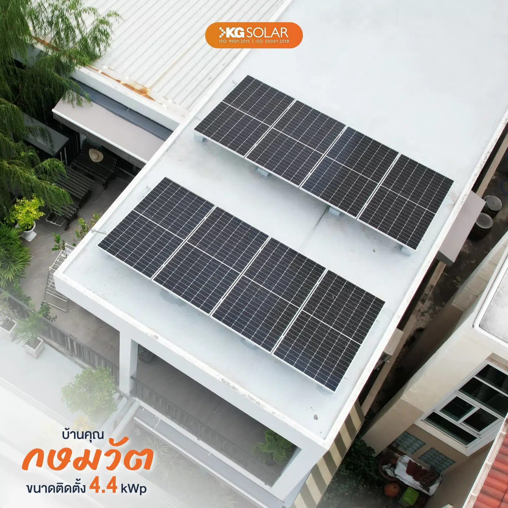 พร้อมบริการหลังการที่ครบครันด้วย KG Guarantee รับประกันทั้งระบบนาน 3 ปี รวมถึงกรณีหลังคารั่ว และการบำรุงรักษาอุปกรณ์ต่าง ๆ ล้างแผงโซลาร์เซลล์ให้ฟรีปีละ 1 ครั้ง (ภายในอายุรับประกัน 3 ปีแรก)