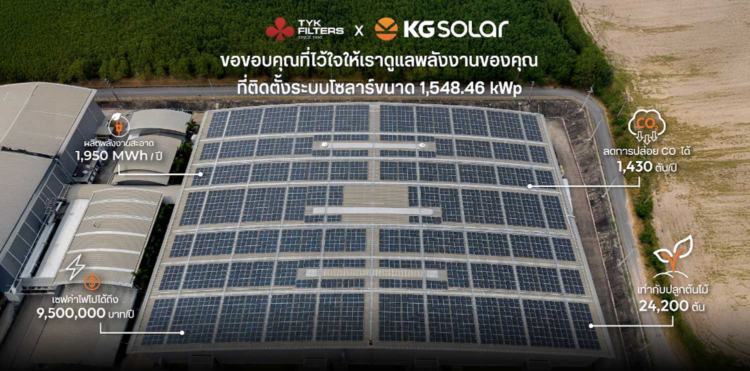 TYK เลือกติดตั้งโซลาร์เพื่อลดต้นทุนด้านพลังงานกับ KG Solar